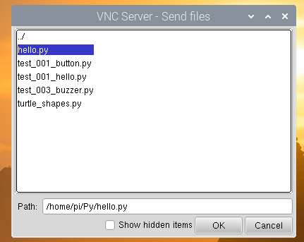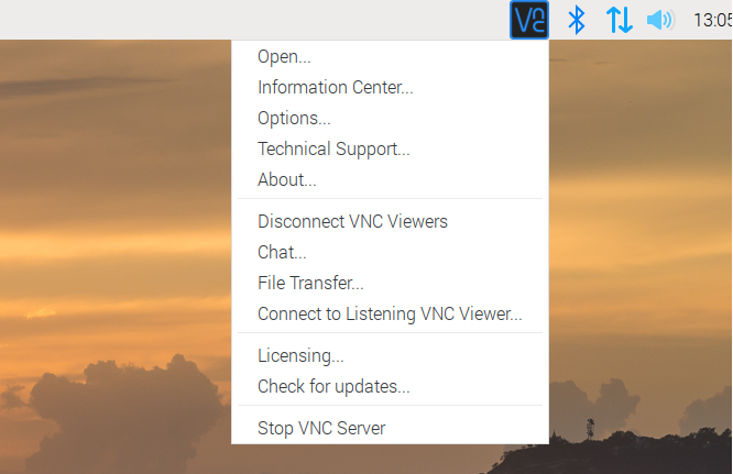 1) VNC로 라즈베리 파이에 원격접속되어 있는 상태에서 라즈베리 파이 화면 상단의 VNC Server 아이콘의 팝업 메뉴를 열고 File Transer...를 클릭한다.