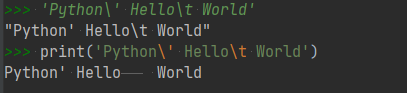 문자열 내 백슬래시(\)는 특수한 목적으로 사용할 수 있다. 예로 \'는 작은 따옴표를 출력하게 하며, \t는 대체로 4칸 정도 띄우는 탭을 삽입하라는 의미이다.