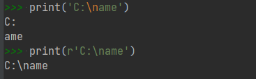 문자열 내 백슬래시(\)를 특수 문자로써 처리하지 않고 백슬래시 자체를 출력하고자 한다면 문자열 앞에 r을 붙여 raw 문자열로 표현할 수 있다.