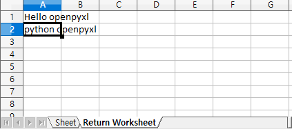 worksheet['A2'].value = 'python openpyxl'
