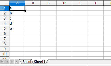 아래와 같이 두번째 시트가 새로 생성되고 알파벳이 입력되어 있음을 확인한다.