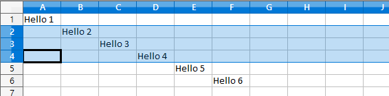 행을 기준으로 한다는 것은 아래의 그림 예에서 처럼 2~4 행의 모든 셀을 얻는다는 의미이다.