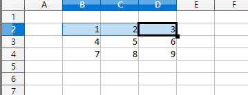 새로운 엑셀 파일을 생성한 후 행 2 ~ 4, 열 2 ~ 4에 해당하는 셀, 즉 셀 B2 ~ D4에 정수를 차례대로 입력하는 코드를 작성한 후 실행해 보면,