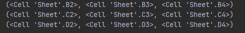 반환된 튜플은 열을 기준으로 셀 객체가 저장되어 있다.