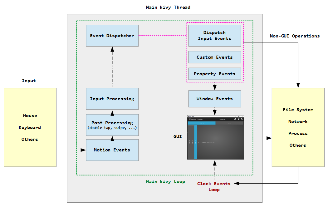 kivy에서 이벤트의 처리 흐름을 도식화하면 아래와 같다.