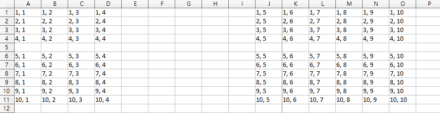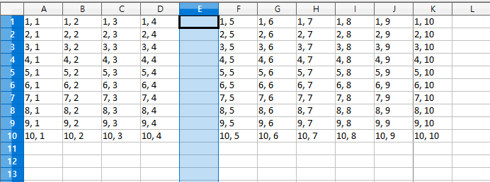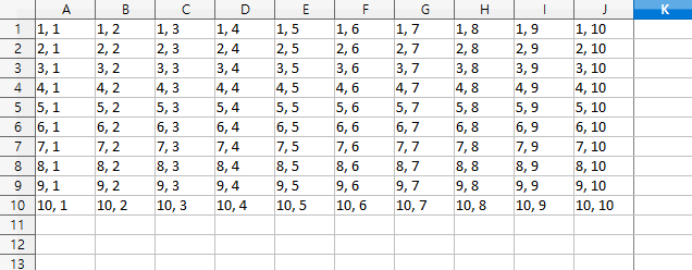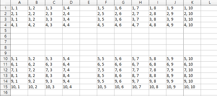 ws.cell(i, j, value=f'{i}, {j}')