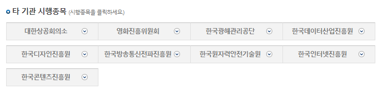 한국산업인력공단 외 타 기관에서 시행하는 자격증은 "타 기관 시행종목" 항목에서 확인할 수 있다.