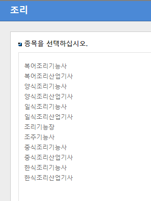 아래는 조리 종목으로 분류되는 자격증 정보이다.