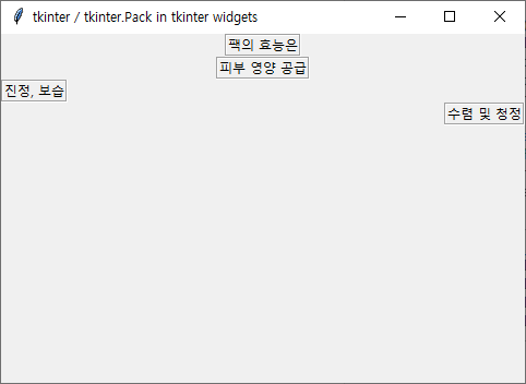 tk.Label(self, text='피부 영양 공급', relief=tk.GROOVE).pack(anchor=tk.CENTER)