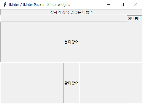 tk.Label(self, text='눈다랑어', relief=tk.GROOVE).pack(fill=tk.BOTH, expand=True)