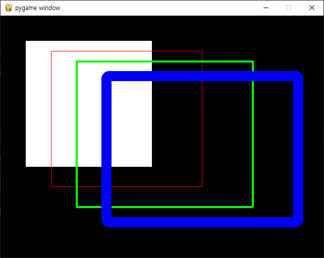 pygame.draw.rect() 함수의 width 파라미터의 값이 0이면 사각형 안쪽은 지정한 색상으로 채워진다.