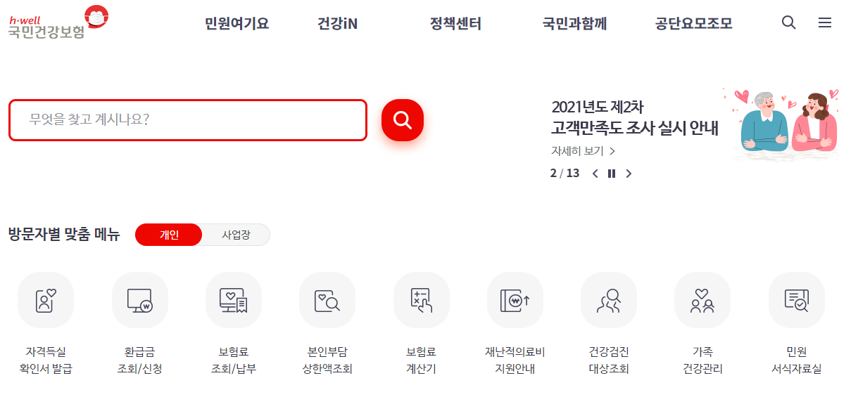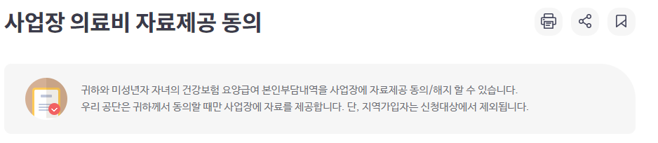 국민건강보험공단 사이트에서 나와 내 자녀(미성년자)의 건강보험 요양급여 본인부담내역을 사업장에 제공하도록 동의된 상태인지 확인하는 방법을 알아 본다.