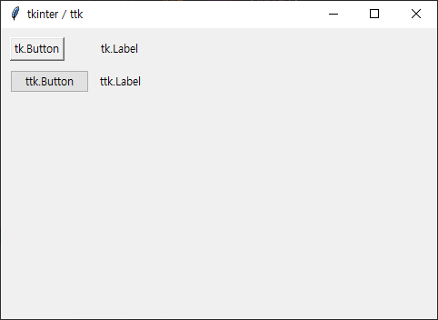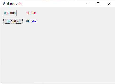 동일하게 코드를 구현했음에도 Label과는 달리 tkinter.Button과 ttk.Button의 모양이 조금 다르네요.