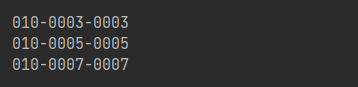 아래의 코드는 임의 문자열에 정의한 패턴('숫자3개-숫자4개-숫자4개')이 존재하는지를 검사하는 코드입니다.