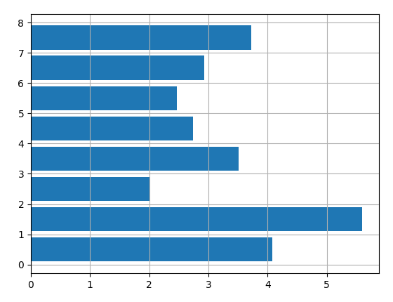 아래는 동일한 데이터에 대하여 barh() 메서드를 사용해 막대 그래프를 그리는 코드입니다.