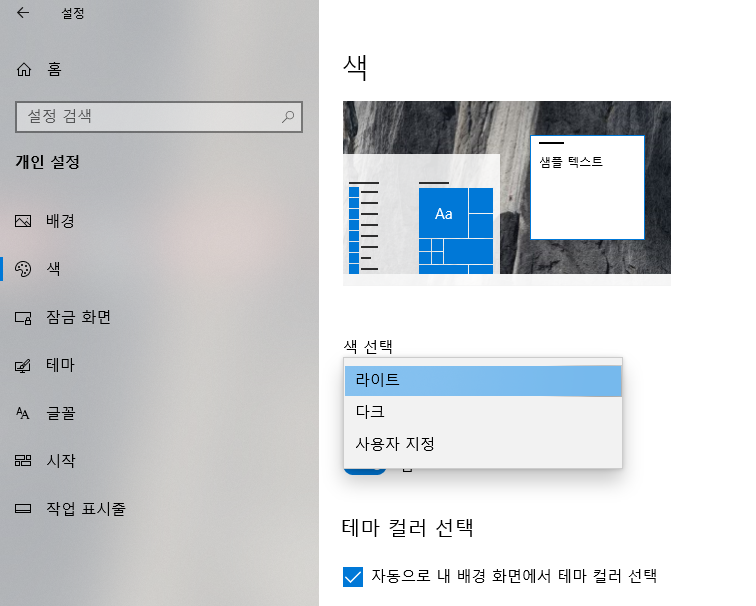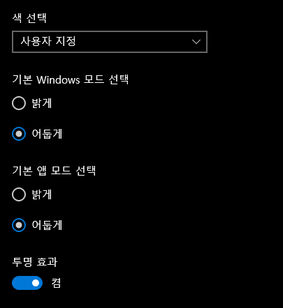 윈도우의 기본 (색) 모드를 설정하는 순서는 아래와 같습니다.