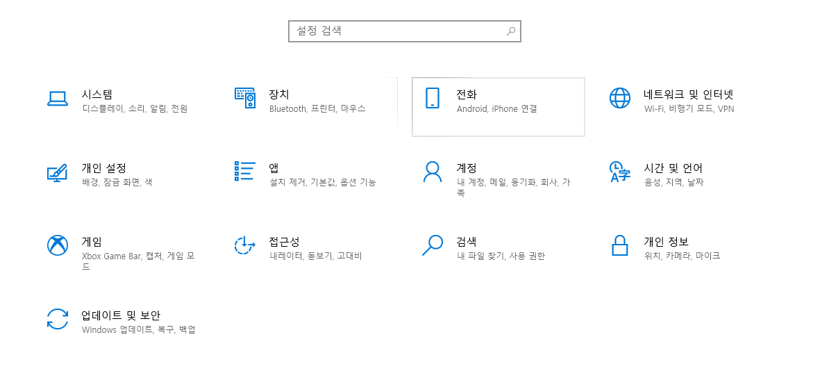 ■ 윈도우 시작 → 설정 → 개인 설정