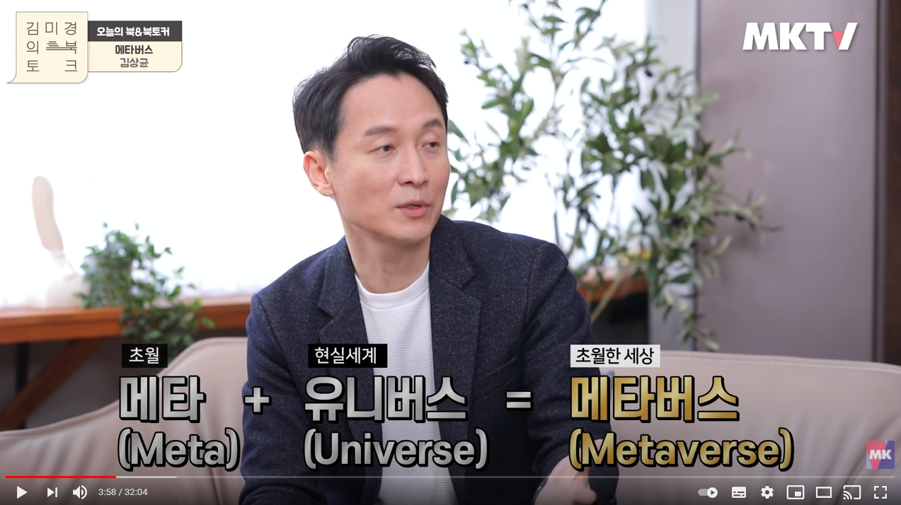 유튜브 EBS 비즈니스 리뷰의 "[풀버전] 메타버스, 이미 도착한 미래 | EBS 비즈니스 리뷰 김상균 편"에선,